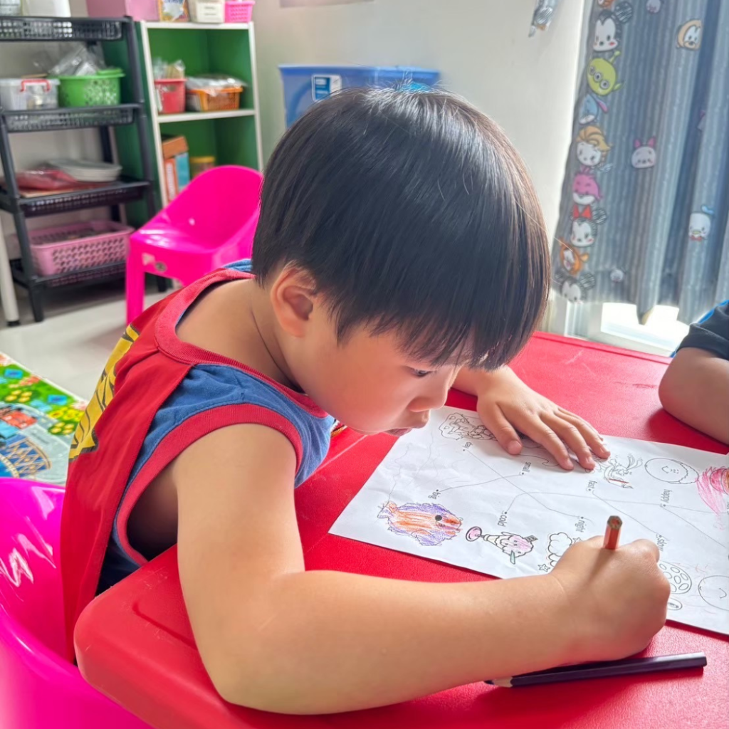 คอร์สเรียนภาษาอังกฤษสำหรับน้องๆอนุบาล 1-2 เรียนพื้นฐาน ฟัง พูด อ่าน เขียน 4 ทักษะ น้องๆจะได้เรียนรู้คำศัพท์ ฝึกเขียนภาษาอังกฤษเบื้องต้น เเละทำกิจกรรมสนุกๆภายในห้องเรียน